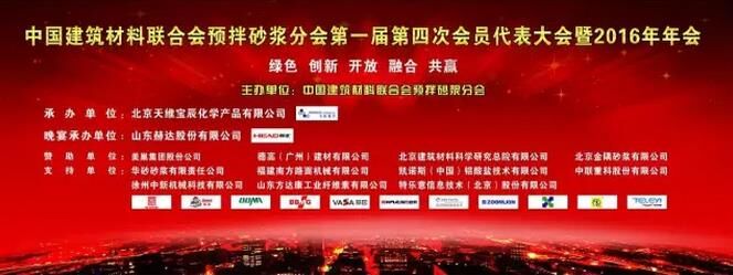 本次年會(huì),由北京天維寶辰化學(xué)產(chǎn)品有限公司承辦,并得到了美巢集團(tuán)股份公司、德高(廣州)建材有限公司、北京建筑材料科學(xué)研究總院有限公司、北京金隅砂漿有限公司的鼎力贊助,及華砂砂漿有限責(zé)任公司、福建南方路面機(jī)械有限公司、凱諾斯(中國(guó))鋁酸鹽技術(shù)有限公司、中聯(lián)重科股份有限公司、徐州中新機(jī)械科技有限公司、山東方達(dá)康工業(yè)纖維素有限公司、特樂意信息(技術(shù))股份有限公司的大力支持。而本次年會(huì)的2016年度中國(guó)預(yù)拌砂漿行業(yè)年會(huì)答謝晚宴,由山東赫達(dá)股份有限公司獨(dú)家冠名贊助。
