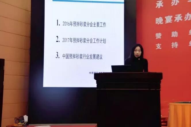 郭晞秘書長(zhǎng)首先代表預(yù)拌砂漿分會(huì)總結(jié)了2016年度的主要工作,并匯報(bào)2017年度行業(yè)重點(diǎn)工作計(jì)劃。