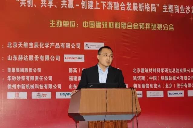 隨后的企業(yè)家?guī)p峰論壇環(huán)節(jié)壇由北京天維寶辰化學(xué)產(chǎn)品有限公司江蘇分公司總經(jīng)理金帥主持。北京金隅砂漿有限公司總經(jīng)理蔡魯宏、北京敬業(yè)達(dá)新型建筑材料有限公司董事長(zhǎng)張新、特樂意信息技術(shù)(北京)股份有限公司董事長(zhǎng)張宏宇、浙江益森科技股份有限公司總經(jīng)理祝張法、福建南方路面機(jī)械有限公司市場(chǎng)總監(jiān)周煒、華砂砂漿有限責(zé)任公司市場(chǎng)總監(jiān)王曉峰、三一重工股份有限公司A8運(yùn)營(yíng)支持項(xiàng)目部總經(jīng)理段鵬、華菱星馬汽車(集團(tuán))股份有限公司專用車研究所所長(zhǎng)裴志軍向所有參會(huì)來(lái)賓共同分享了在更加透明、開放和公平的市場(chǎng)環(huán)境下,各家企業(yè)應(yīng)如何彼此聯(lián)手,用共同創(chuàng)造、共同分享的精神,尋求未來(lái)合作共贏的機(jī)會(huì)。