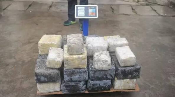 經(jīng)過近一個小時的努力,偵查人員從車廂內(nèi)的混凝土里取出了34包毒品可疑物,經(jīng)過稱量有94.65公斤。毒品可疑物被取出后,裝了滿滿3編織袋,當時毒品被整齊擺放并澆灌在貨車車廂的景象,連從事多年緝毒工作的偵查員都驚嘆不已。