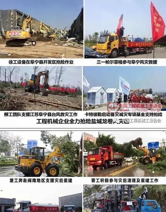 2015年底以來,深圳發(fā)生大范圍滑坡災(zāi)害、江蘇鹽城市阜寧、射陽等地出現(xiàn)強對流天氣、超強龍卷風(fēng)襲擊、閩南地區(qū)遭遇強臺風(fēng)“莫蘭蒂”……在這些災(zāi)害發(fā)生時,廈工、晉工、中聯(lián)重科、林德叉車、徐工、三一帕爾菲格、柳工、卡特彼勒等工程機械企業(yè)快速反應(yīng),迅速集結(jié)救援設(shè)備,第一時間投入到搶險救援中去。紛紛派出大型工程機械設(shè)備和援助隊伍加入到救援與災(zāi)后重建工作,并向災(zāi)區(qū)捐款捐物、捐贈機械設(shè)備,展現(xiàn)了工程機械行業(yè)企業(yè)一如既往的強烈社會責(zé)任感和崇高的奉獻精神。