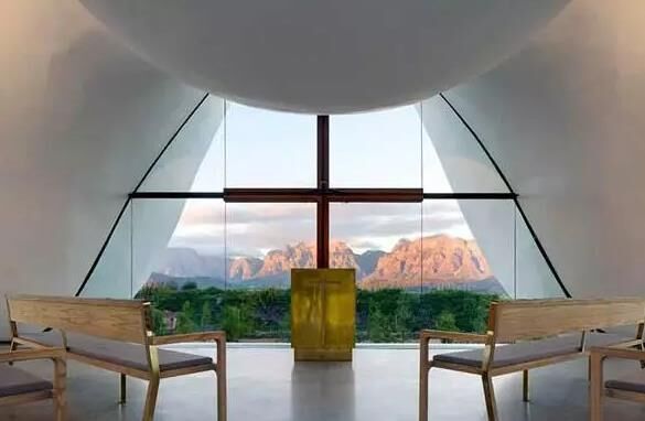 這座優(yōu)美的混凝土小教堂宛如一首小提琴協(xié)奏曲坐落在開普敦城外風(fēng)景如畫的Bosjes農(nóng)場(chǎng)。