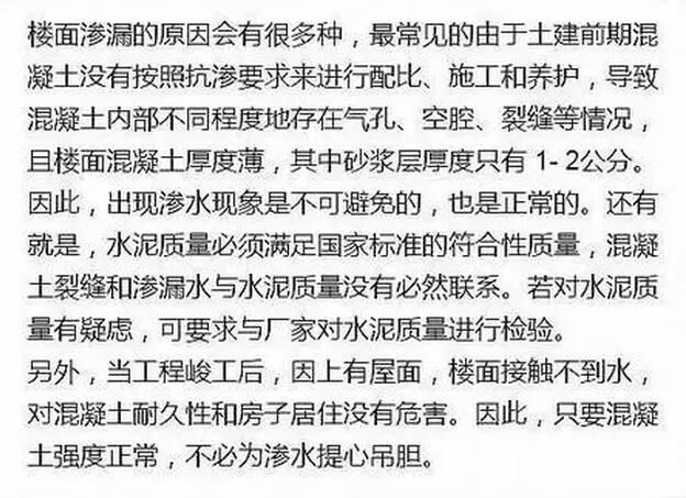 為了避免或減輕樓面混凝土的滲漏水情況,在此小編想提醒大家在施工中應采取以下主要措施: