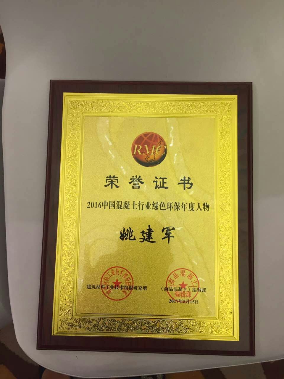 會議上,同時也公布了2016中國混凝土行業(yè)綠色環(huán)保年度人物,并由會議領(lǐng)導當場頒發(fā)了獲獎證書。