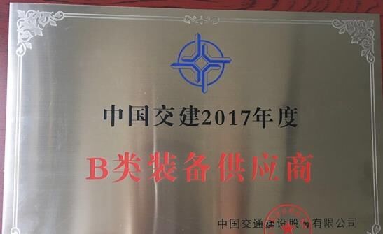 圓友重工榮獲“中國交建2017年度B類裝備供應商”