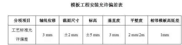 模板要求內平面平整,接縫嚴密,防止漏漿,模板安裝的允許偏差詳見下表: