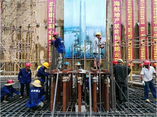 7月9日,由北京建工集團(tuán)施工的428米的海南第一高樓——海口雙子塔?南塔工程塔樓筏板基礎(chǔ)單次9.6萬(wàn)噸近4萬(wàn)方混凝土澆筑施工任務(wù)拉開(kāi)序幕。下午13時(shí)36分,海航地產(chǎn)總裁楊猛先生一聲令下,第一車混凝土通過(guò)溜槽奔馳而下,??陔p子塔?南塔大體積混凝土澆筑正式開(kāi)始,全球六大傳媒集團(tuán)之一Havas、央視9頻道、鳳凰網(wǎng)等多家媒體親臨現(xiàn)場(chǎng)實(shí)況轉(zhuǎn)播報(bào)道這項(xiàng)“超級(jí)工程”。