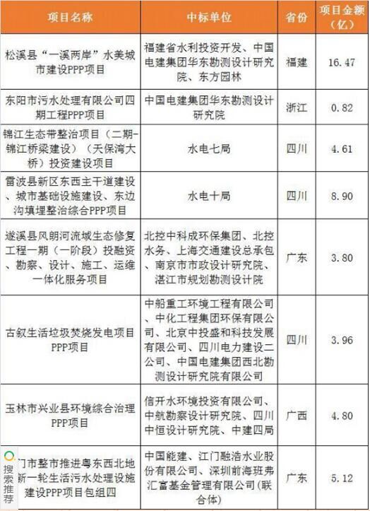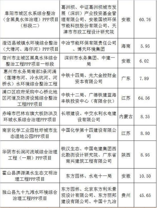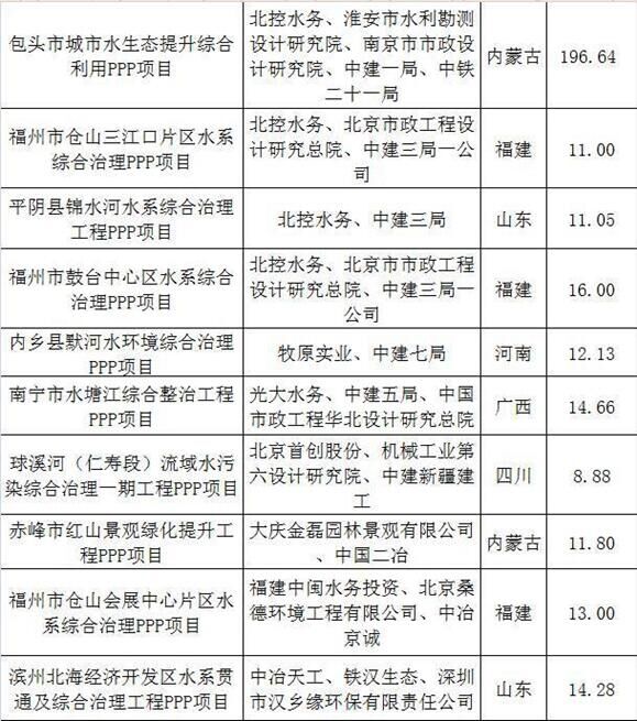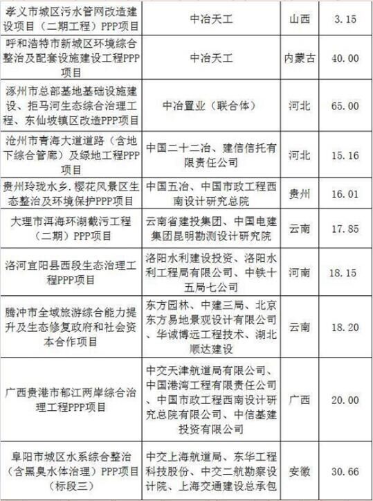 2017上半年建筑企業(yè)承攬環(huán)保工程PPP項(xiàng)目清單