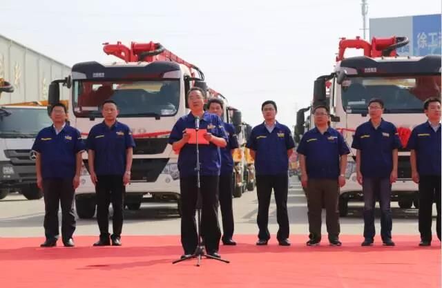 半年時(shí)間內(nèi),這已是徐工施維英第7次出口訂單批量發(fā)車儀式。儀式現(xiàn)場人頭攢動(dòng)、彩旗飄揚(yáng)、禮炮齊鳴, 一臺臺披戴紅花的混凝土機(jī)械設(shè)備就像即將出征的戰(zhàn)士,整齊列隊(duì),等待出征前的檢閱。