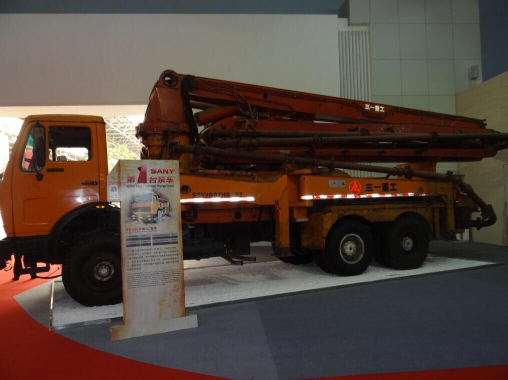 在三一重工的工廠大廳還展示著三一重工自主研發(fā)的第一臺泵車,1998年研制,1999年交付,它的誕生一舉打破了當時洋品牌泵車一統中國的局面,對于中國泵車發(fā)展具有劃時代的意義。這臺泵車在青海工作近11年,2009年收藏進入三一展館時仍在為客戶創(chuàng)造價值,是國內使用壽命最長的泵車。