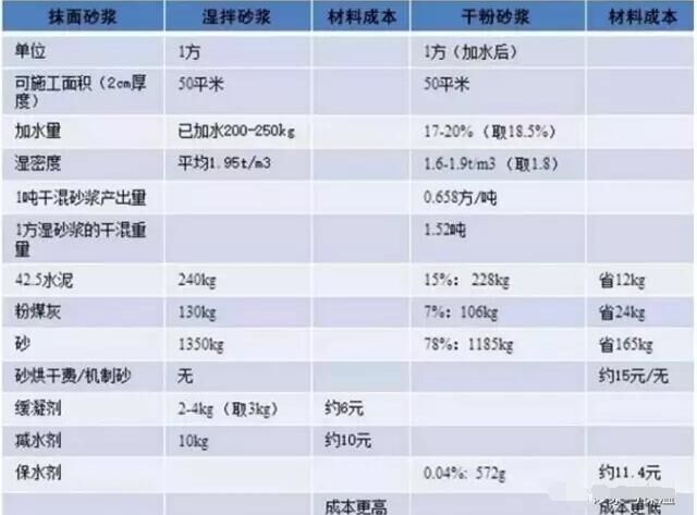 雖然,不管干粉砂漿還是濕拌砂漿,其主要原料還都是水泥和沙子,但是,干粉砂漿相比濕拌砂漿原材料和添加劑使用量更少,原材料成本更低。