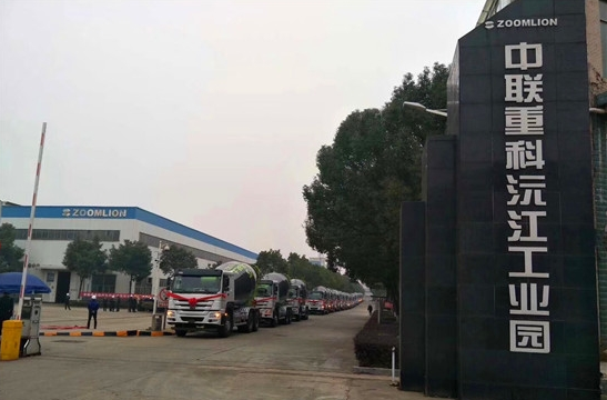 混凝土攪拌車(chē)依次排列準(zhǔn)備發(fā)往全國(guó)各地