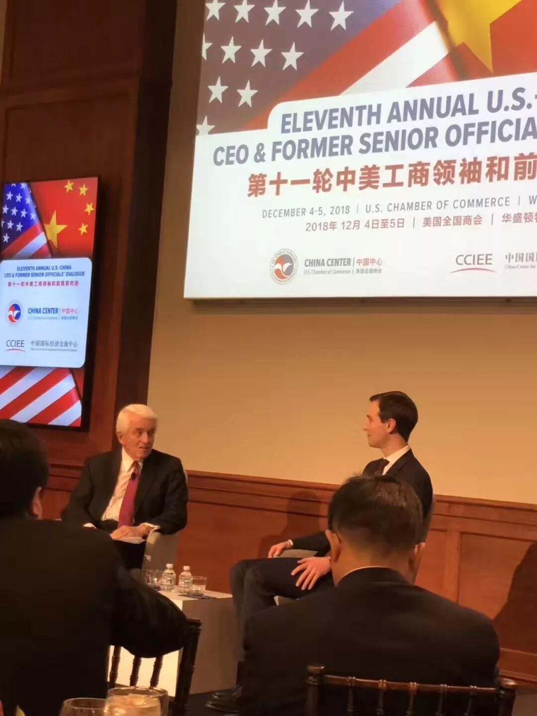 本次對話是習(xí)近平主席和特朗普總統(tǒng)會晤之后,第一個中方訪美的工商領(lǐng)袖、前高官以及智庫學(xué)者代表團(tuán)。與會代表一致認(rèn)為,兩國元首在阿根廷G20峰會會晤,決定停止升級關(guān)稅等貿(mào)易限制措施,為今后一個時期中美關(guān)系指明了方向。健康穩(wěn)定的中美經(jīng)貿(mào)關(guān)系符合兩國和世界的根本利益,推動雙邊關(guān)系盡快回到正常軌道,是兩國人民的共同期待。合作始終是中美唯一正確選擇,應(yīng)登高望遠(yuǎn),繼續(xù)加強(qiáng)溝通化解分歧。