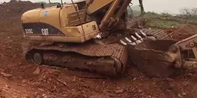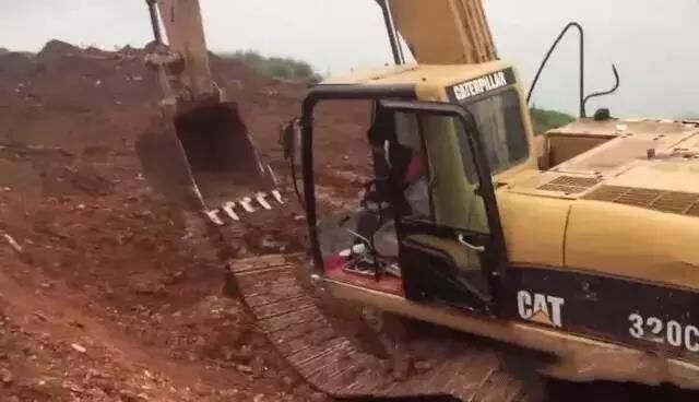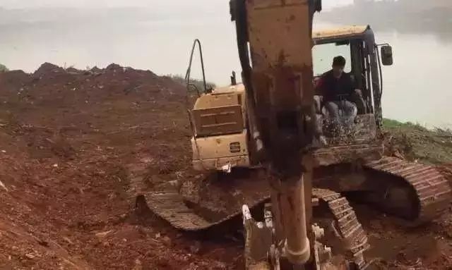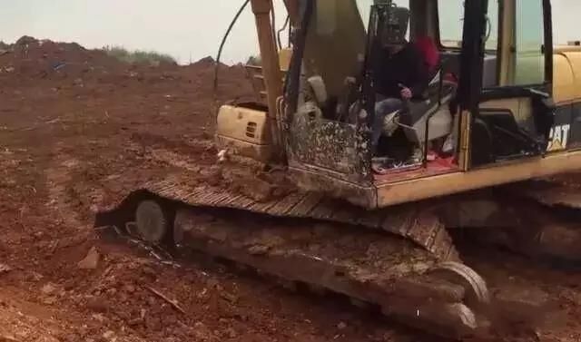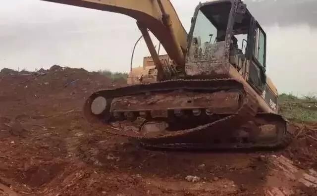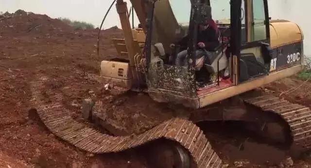 把機身轉(zhuǎn)向左邊,再次用挖機把履帶給搞起