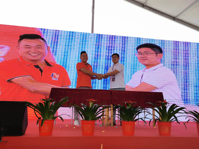 山東八達(dá)國際工程機械有限公司于保成副總經(jīng)理與山東天宇建設(shè)機械股份有限公司姜山總裁進行現(xiàn)場簽約儀式