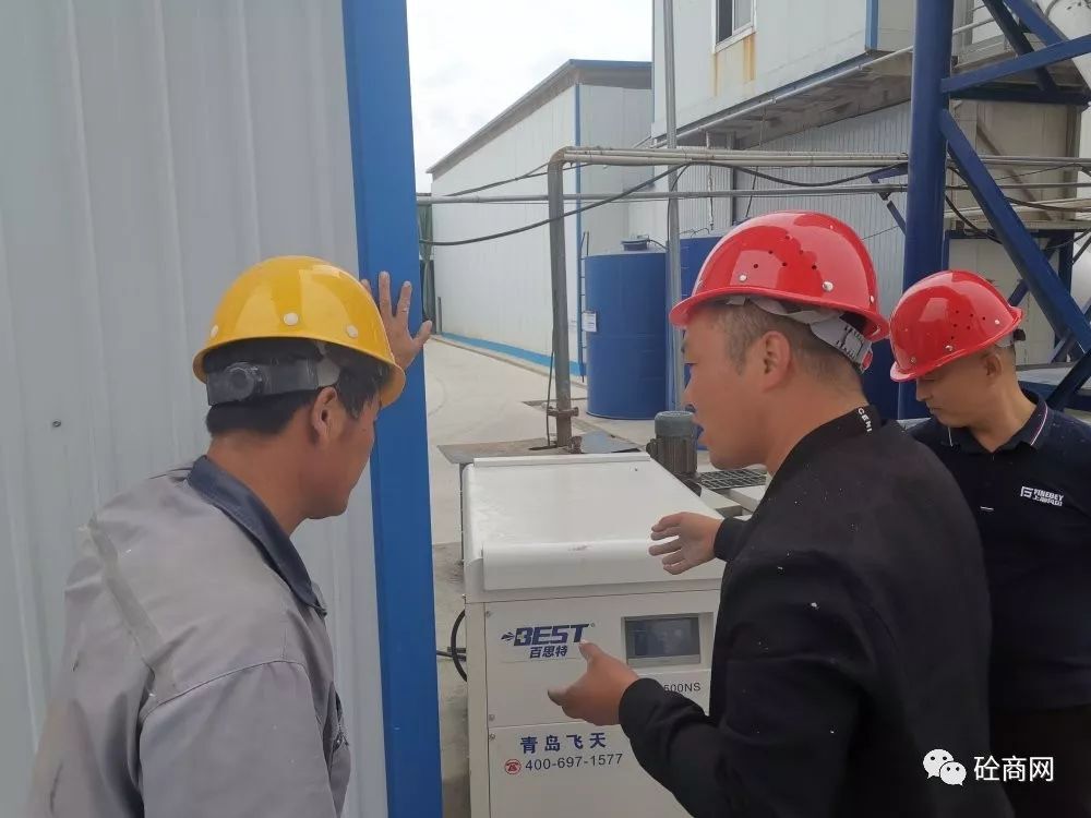 到了青島某攪拌站后,其攪拌站負(fù)責(zé)人攜站長(zhǎng)親自到現(xiàn)場(chǎng)觀看試機(jī)效果。