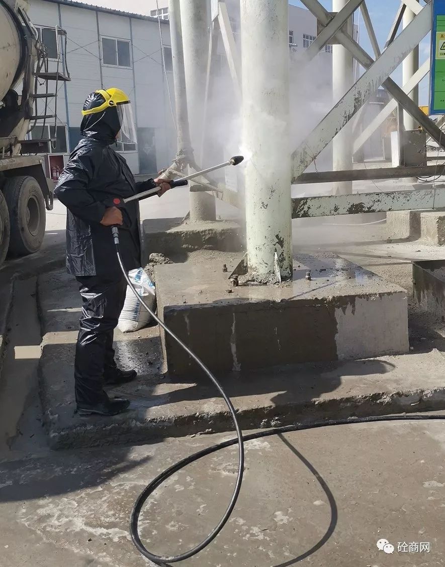在楊技術(shù)員給站上工作人員進(jìn)行初步講解指導(dǎo)后,首先對(duì)兩年沒(méi)有清理過(guò)的水泥倉(cāng)支腿下方累積的混凝土進(jìn)行了處理。那么,效果究竟怎么樣呢?具體視頻關(guān)注“砼商網(wǎng)”公眾號(hào),回復(fù)“高壓清洗機(jī)”即可獲得技術(shù)員正準(zhǔn)備打攪拌機(jī)主樓容易噴濺混凝土的地方時(shí)該攪拌站站長(zhǎng)說(shuō)道,這可得有兩年沒(méi)清理過(guò)的混凝土結(jié)塊,十幾公分厚呀!你們這高壓清洗機(jī)能打掉嗎?這是混凝土啊!這么長(zhǎng)時(shí)間了,還這么厚,打不下去怎么辦?正在小編心里打鼓的時(shí)候,楊技術(shù)員說(shuō)道,沒(méi)問(wèn)題,放心吧!