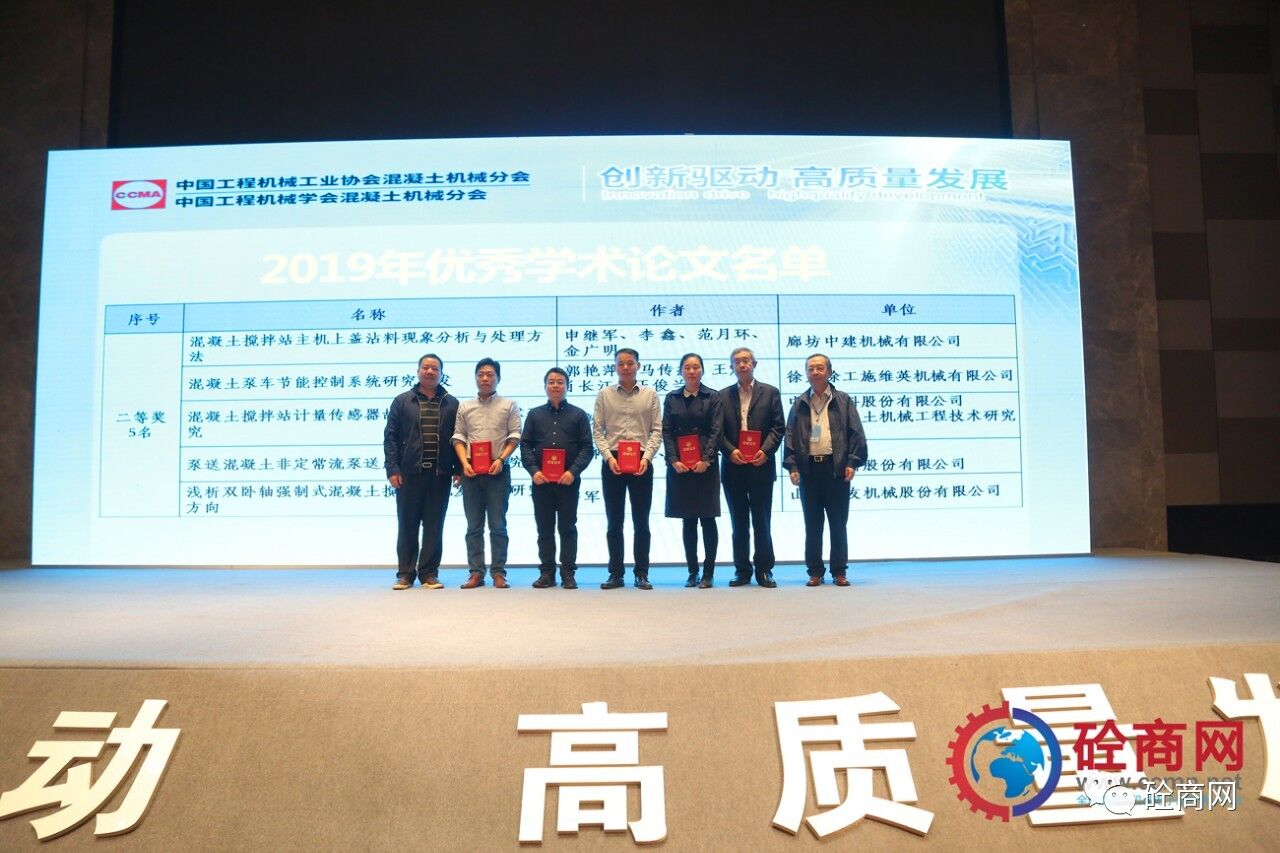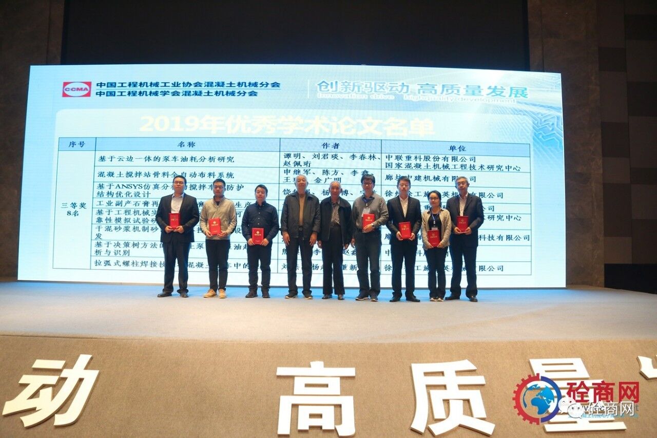 2019年的論文征集評(píng)選結(jié)果已經(jīng)揭曉,共收到參評(píng)論文26篇,其中會(huì)長(zhǎng)單位中聯(lián)重科、國(guó)家混凝土機(jī)械技術(shù)研究中心《基于離散單元法立軸沖擊破碎機(jī)成砂率研究》等三篇論文獲得一等獎(jiǎng),副會(huì)長(zhǎng)單位廊坊中建機(jī)械有限公司《混凝土攪拌站主機(jī)上蓋沾料現(xiàn)象分析與處理方法》共5篇論文獲得二等獎(jiǎng)、中聯(lián)重科、國(guó)家混凝土機(jī)械技術(shù)研究中心《基于云邊一體的泵車油耗分析研究》等8篇論文獲得三等獎(jiǎng),其余10篇均獲優(yōu)秀論文獎(jiǎng)。在此我提議:讓我們以熱烈掌聲向中聯(lián)重科、徐工施維英、廊坊中建機(jī)械有限公司三家優(yōu)秀組織單位和論文獲獎(jiǎng)人員表示最熱烈的祝賀和最誠(chéng)摯的感謝——感謝大家為中國(guó)混凝土機(jī)械行業(yè)的技術(shù)進(jìn)步所做出的貢獻(xiàn)。