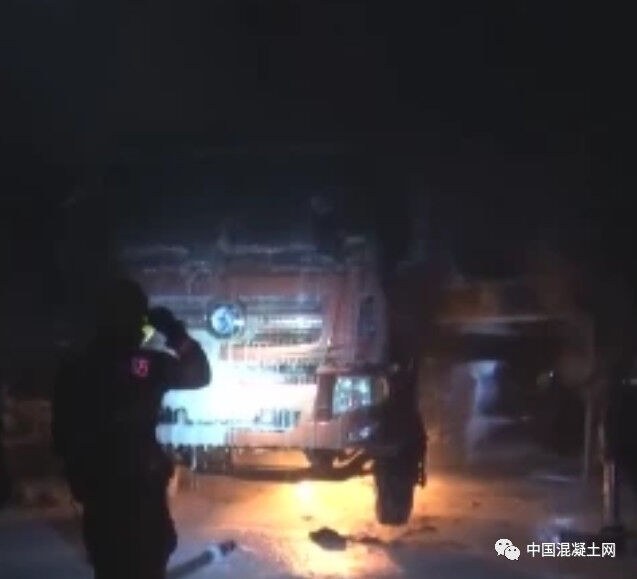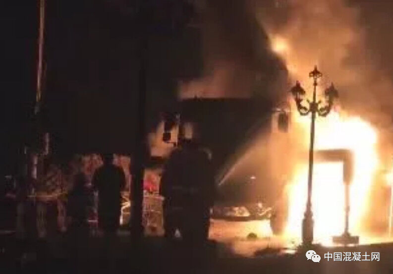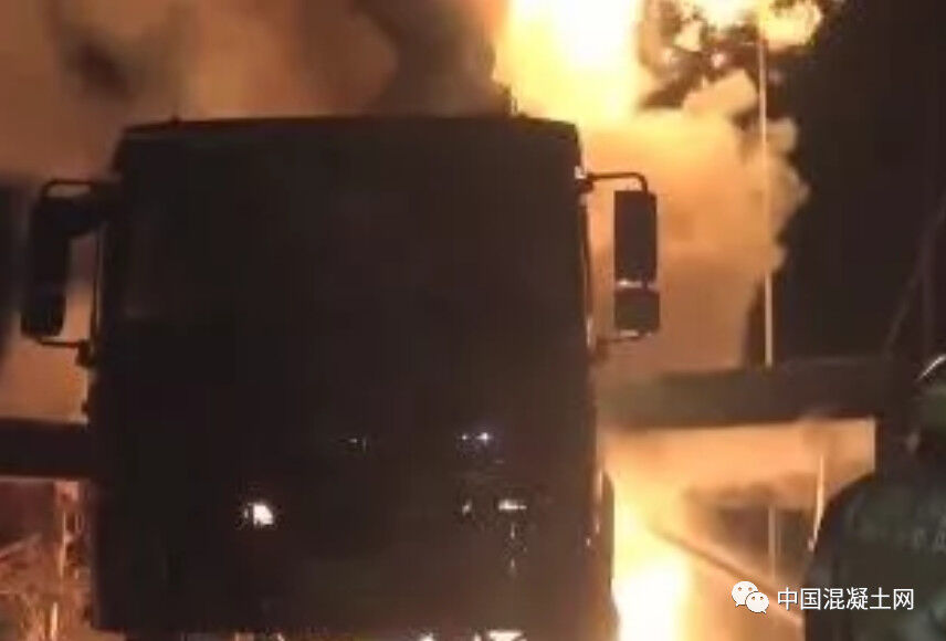 一輛混凝土泵車突然起火!