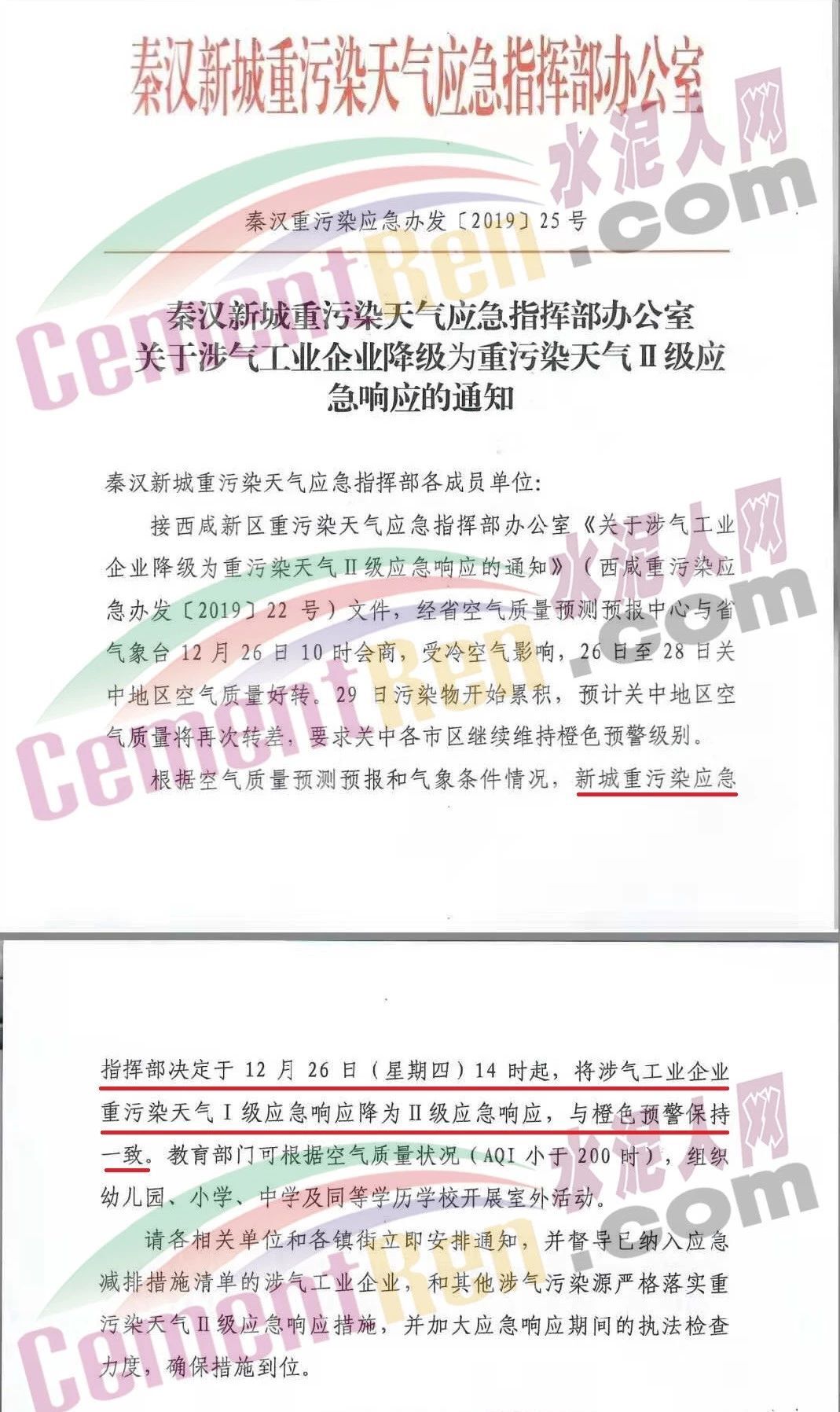 12月26日,陜西省西安市重污染天氣應(yīng)急指揮部辦公室發(fā)布了《關(guān)于涉氣企業(yè)由I級(jí)應(yīng)急響應(yīng)降至II級(jí)應(yīng)急響應(yīng)的通知》稱,西安市指揮部辦公室定于12月26日14時(shí)起,全西安市納入《西安市重污染天氣應(yīng)急減排項(xiàng)目清單》的涉氣企業(yè),由I級(jí)應(yīng)急響應(yīng)降至II級(jí)應(yīng)急響應(yīng)。通知原文如下: