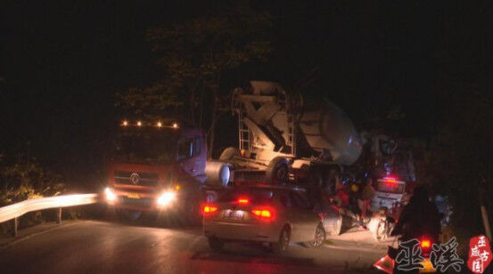 11月11日中午12時左右,在S102省道二灣附近,一輛大型混凝土攪拌罐車側翻,幸無人員傷亡。