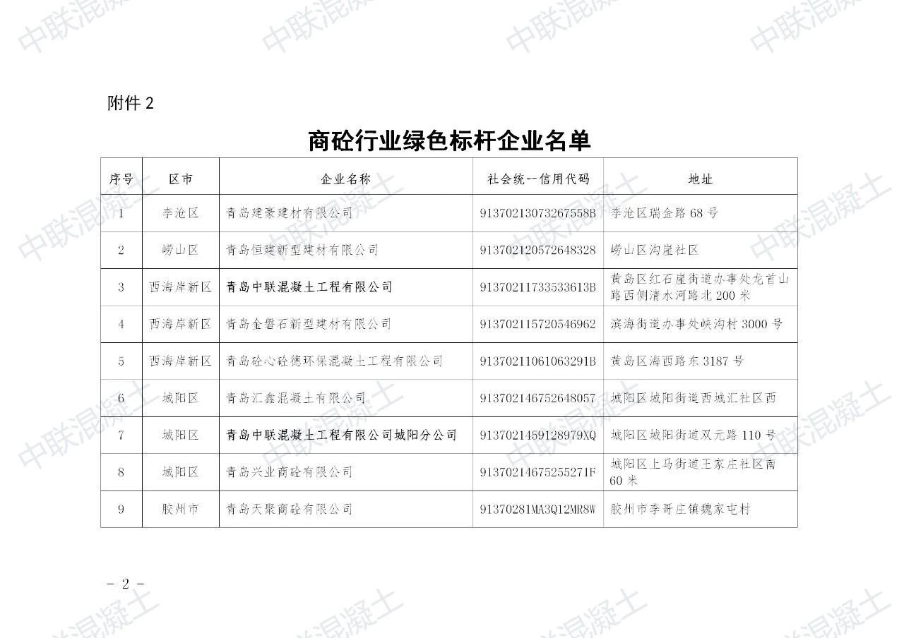 2020年1月3日,青島市重污染天氣專項應(yīng)急指揮部辦公室發(fā)布商砼行業(yè)綠色標桿企業(yè)名單,全市170余家混凝土企業(yè)僅有15家通過評定,青島中聯(lián)混凝土和城陽分公司獨占2席。