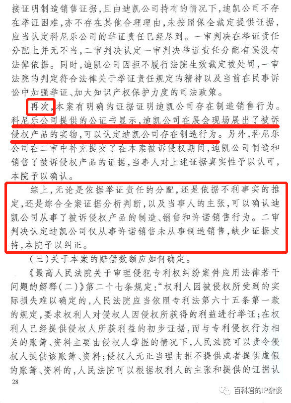 關(guān)鍵在于,最高院是“從舉證責任和舉證妨礙的角度可以推定凱迪公司存在制造銷售行為”。