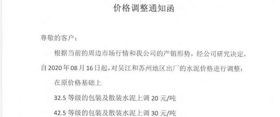 熟料漲價(jià)之后長三角區(qū)域水泥價(jià)格正式開漲!