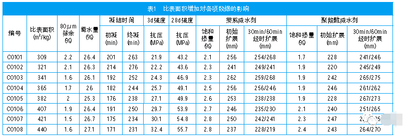 2 水泥品質(zhì)指標(biāo)對混凝土的影響