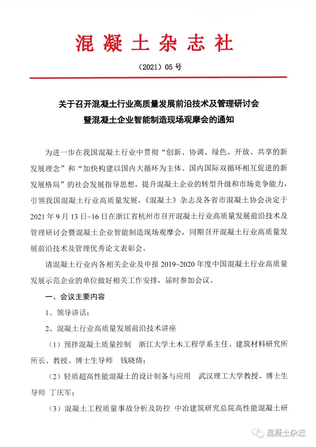 (9.13杭州)關于舉辦混凝土行業(yè)高質量發(fā)展前沿技術及管理研討會暨混凝土企業(yè)智能制造現場觀摩會的通知
