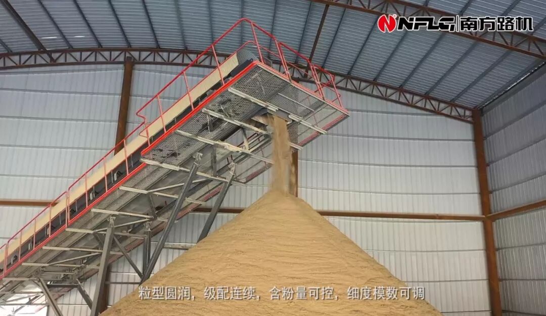 △試驗(yàn)現(xiàn)場采用南方路機(jī)V7制砂設(shè)備生產(chǎn)的機(jī)制砂