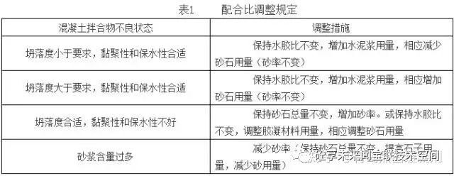 實(shí)際生產(chǎn)過程中,可根據(jù)需要調(diào)整混凝土配合比,但調(diào)整時要求: