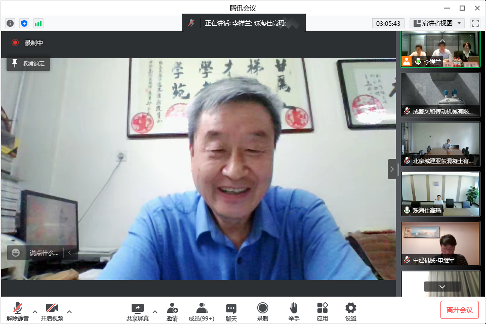 混凝土機械分會的年會還得到很多行業(yè)老前輩,專家、高工、行業(yè)精英的關注和支持,在自由交流環(huán)節(jié),中國工程機械工業(yè)協(xié)會名譽會長祁俊祁會長也發(fā)言祝賀,首先祝賀大會線上會議開的非常成功,他呼吁現(xiàn)在中國混凝土機械在全世界已占主導地位,站在領跑位置,肯定了行業(yè)的領先性,但由于各種因素的疊加,行業(yè)也到了最困難的時候,協(xié)會要增加上下游的互動,爭取支持,抱團取暖,希望混凝土機械在工程機械整個領域大家共同進步,相互幫扶渡過難關。