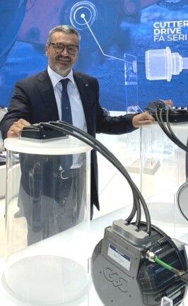 首席執(zhí)行官Fausto Carboni在慕尼黑舉行的2022Bauma展上展示用于建筑機械的新型電力驅動裝置。
