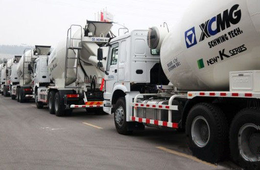 近日,江蘇某租賃公司批量采購的混凝土攪拌車在徐工施維英攪拌機(jī)械制造基地成功發(fā)車?;顒蝇F(xiàn)場,徐工產(chǎn)品隊列大氣磅礴,系在新車上的紅色綢帶和現(xiàn)場的氣氛相得益彰??蛻魧π旃せ炷翑嚢柢嚫咝е悄堋⒎€(wěn)定安全、節(jié)能實用的產(chǎn)品特點發(fā)出了由衷的贊嘆。