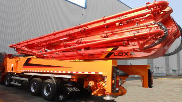 四橋最長泵車62米泵車:新型液壓系統(tǒng)及新型鉸接式泵送系統(tǒng)、電控換向、專利7R型臂架、三級伸縮X支腿,各項性能指標達到或超越標桿。