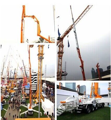 中聯(lián)重科此次參展泵車包括一臺三橋56米碳纖維臂架泵車和一臺60米7節(jié)臂橫展臂架泵車。