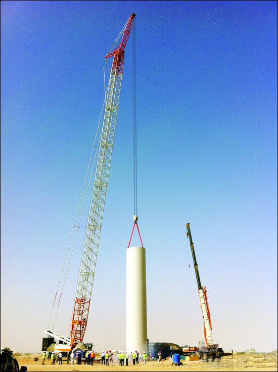 該風(fēng)電項(xiàng)目地點(diǎn)位于巴基斯坦卡拉奇信德省的東北部,距卡拉奇市約150公里,風(fēng)電項(xiàng)目總裝機(jī)規(guī)模30MW,項(xiàng)目將裝設(shè)12臺(tái)2.5MW風(fēng)機(jī),每臺(tái)風(fēng)電機(jī)配套提供一臺(tái)箱式變電站,此大型工程普通起重機(jī)根本無(wú)法勝任,而作為中聯(lián)重科履帶吊的明星產(chǎn)品,QUY500以組裝便捷性、起重性能、吊裝效率等方面的優(yōu)勢(shì)征服了巴基斯坦客戶以及施工單位團(tuán)隊(duì)。此次QUY500進(jìn)行的風(fēng)電場(chǎng)首吊采用的是固定副臂風(fēng)電工況(主臂84米+固定副臂12米)、起吊幅度20m、額定起重量為110t、起吊高度100m、機(jī)艙重量84t、負(fù)載率為83.6%。在巴基斯坦卡拉奇的成功首吊,再一次驗(yàn)證了中聯(lián)QUY500“風(fēng)電之王”的美譽(yù)。