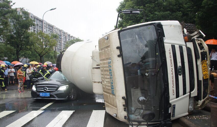 攪拌車慢慢往右 側(cè)翻