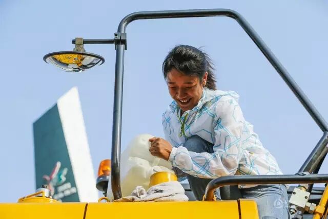 丁旭來(lái)到戶外練習(xí)場(chǎng)后,仔細(xì)將夏季用的柴油灌入挖掘機(jī)中,旁邊的同事提醒說(shuō):“可別灑出來(lái)”,讓她不禁靦腆地笑起來(lái)。