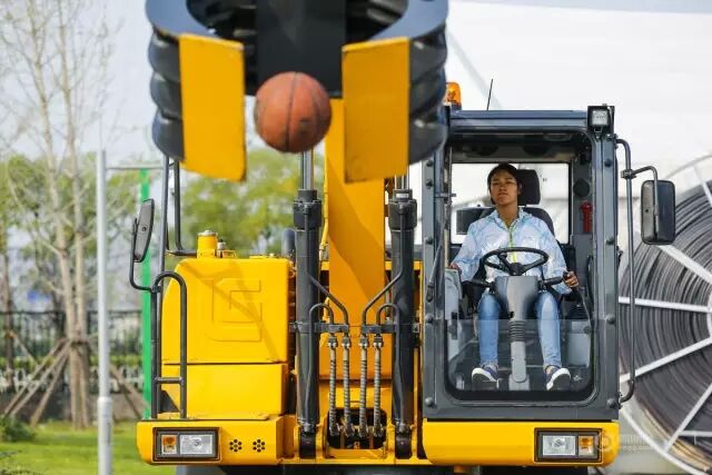 丁旭打開(kāi)車門,坐進(jìn)挖掘機(jī)艙內(nèi),將地上的籃球一個(gè)個(gè)用吊臂抓取,進(jìn)行遠(yuǎn)距離投籃。為了方便直視籃筐,她將眼前的玻璃窗也卸掉了。她每天都會(huì)像這樣頂著烈日在戶外練習(xí)一整天。