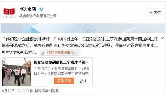 不過,從卓達的報道來看,卓達主要是用推廣自己3D模塊建房技術(shù)的噱頭吸引官方前來參觀,給他們“站臺”,卓達并不敢在官員們面前宣傳自己私下在進行的那些涉嫌“違法集資”的活動。
