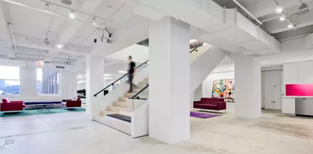 辦公空間大面積采用混凝土材料整體地坪,與現(xiàn)代風(fēng)格的軟裝相互搭配,偶爾點(diǎn)綴期間的鮮活色彩,在整體純色空間形成對比,粗獷與精致相互交融,打造出全然開放通透、時(shí)尚簡約的空間環(huán)境。
