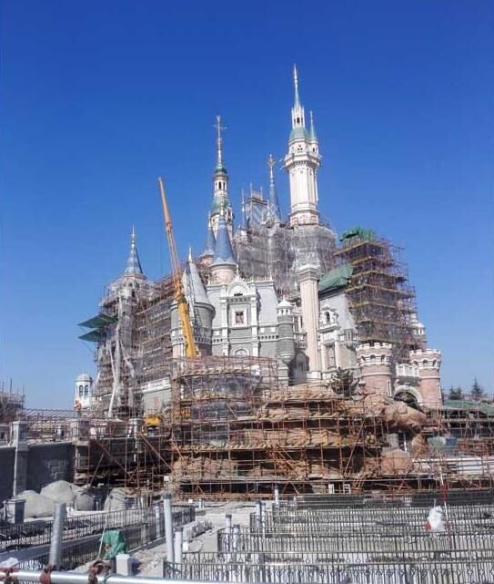近日,筆者在上海迪士尼項(xiàng)目現(xiàn)場(chǎng)看到,項(xiàng)目的主體工程已經(jīng)呈現(xiàn)效果,迪士尼城堡等主體建筑呈現(xiàn)出童話般的色彩。圖中坐落于園區(qū)中央正在施工的就是白雪公主住的“奇幻童話城堡”,而它不僅是上海迪士尼樂園中的最高建筑,還是世界上最高、最大、最具互動(dòng)性的迪士尼城堡