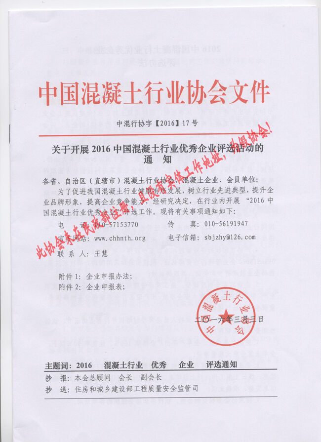 近日,有多家省市協(xié)會和有關生產(chǎn)企業(yè)向分會秘書處反映收到“中國混凝土行業(yè)協(xié)會”2016(16、17、18、19、20)文件開展所謂的“中國混凝土行業(yè)評選活動”的通知。