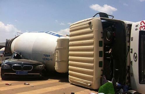 該起事故大約發(fā)生在8日中午11時(shí)左右,事發(fā)的地點(diǎn)位于昆明市經(jīng)開(kāi)區(qū)轄區(qū)內(nèi),交通管轄歸屬于呈貢區(qū)。接到報(bào)警后,昆明市公安局呈貢分局交警大隊(duì)民警立即趕赴現(xiàn)場(chǎng)處置,昆明消防特勤三中隊(duì)也派出官兵緊急趕赴現(xiàn)場(chǎng)展開(kāi)救援。由于人力無(wú)法將側(cè)翻的攪拌車扶起,救援無(wú)法展開(kāi),也沒(méi)法了解寶馬車內(nèi)人員的情況,現(xiàn)場(chǎng)緊急調(diào)來(lái)了吊車對(duì)側(cè)翻車輛進(jìn)行起吊。