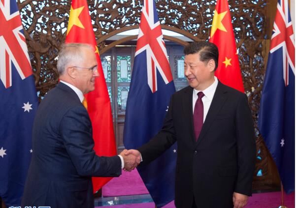 習(xí)近平指出,當(dāng)前,中澳關(guān)系保持積極發(fā)展勢頭,兩國各領(lǐng)域交流合作日益密切。中澳全面戰(zhàn)略伙伴關(guān)系具有強(qiáng)勁活力,雙方要把握兩國關(guān)系發(fā)展正確方向,尊重彼此核心利益和重大關(guān)切,確保中澳關(guān)系持續(xù)健康穩(wěn)定發(fā)展。希望雙方做好中方“一帶一路”倡議同澳方“北部大開發(fā)”計(jì)劃、中國創(chuàng)新驅(qū)動(dòng)發(fā)展戰(zhàn)略同澳方“國家創(chuàng)新與科學(xué)議程”的對(duì)接,實(shí)施好中澳自由貿(mào)易協(xié)定,探討開展更多務(wù)實(shí)合作項(xiàng)目,推進(jìn)司法執(zhí)法、防務(wù)等領(lǐng)域交流合作。