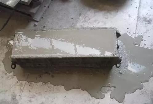 (11)超量摻混凝土外加劑的混凝土易出現(xiàn)泌水、離析。