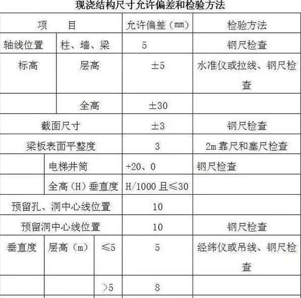 現(xiàn)澆結(jié)構(gòu)尺寸允許偏差和檢驗方法