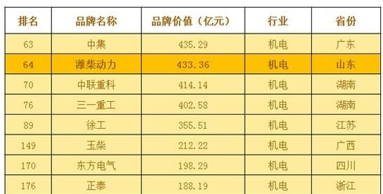 而三一重工以402.58億品牌價值,排名76;
